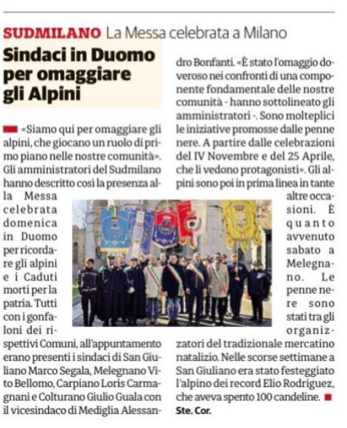 (Marzo 2024) Gita a Sabbioneta (MN) (22 marzo 2024) %20%2022%20marzo%202024/content/images/large/IMG_8939.jpg) Commemorazione delle vittime del CoViD19 (18 Marzo 2024)  Storie d'altri tempi: le SORELLE CHIOCCARELLO  Gita a Pollenzo ed Alba (CN) (24 febbraio 2024) %20%20-%2024%20febbraio%202024/content/images/large/IMG_8517.jpg) Intervista a Elio su "L'Impronta"  Concerto di Capodanno (9 gennaio 2024)  AVIFAUNA SANDONATESE (anni vari) /content/images/large/2018-02-27-18.jpg) PIGNARUL - Gennaio 2024  Alpini: auguri di Natale (22 Dicembre 2023)  Premiazione ultranovantenni APVE, sezione San Donato Milanese (19 Dicembre 2023)  Concerto di Natale del corpo musicale "Pietro Mascagni" (17 Dicembre 2023)  Auguri di Natale a Lodi (14 Dicembre 2023)  Elio, 98° compleanno con gli Alpini (29/11/1925)  ELIO, 98° compleanno (29/11/1925)  Museo MATTEI - ideato e realizzato da Rosangela Mattei (MATELICA [MC])
