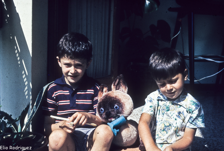 1963-07-12 - SAN DONATO MILANESE ( MI ) - Bruno e Francescxo alle prese con un piccolo arco e freccia nonchè con l'amico gattone ( ancora vivo e vegeto nel mese di marzo 2017 ).