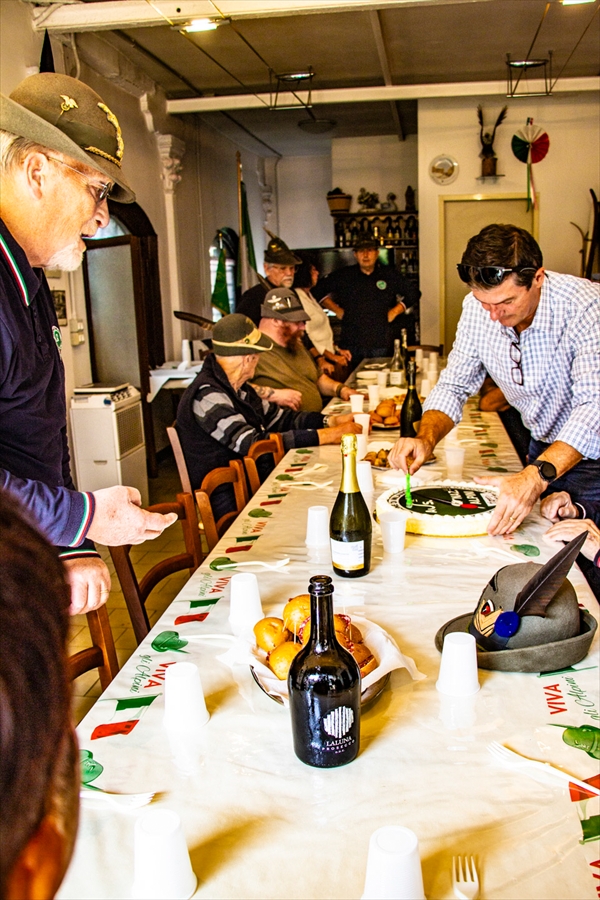 ALPINI : Festa per il 91° compleanno del Vecio Michele DEL TOGNO (Michelone per gli amici) - 11 ottobre 2025. Il figlio Massimo sistema le candeline.