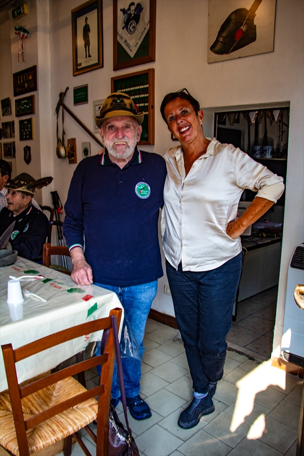 ALPINI : Festa per il 91° compleanno del Vecio Michele DEL TOGNO (Michelone per gli amici) - 11 ottobre 2025. Morena e Franco in posa per la foto ricordo.