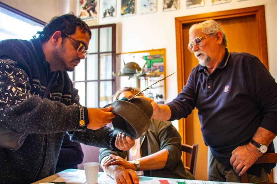 ALPINI : Festa per il 91° compleanno di Michelone. 11 ottobre 2025. Foto ricordo di Luigi, Maurizio e....il suo cappello d'Alpino.
