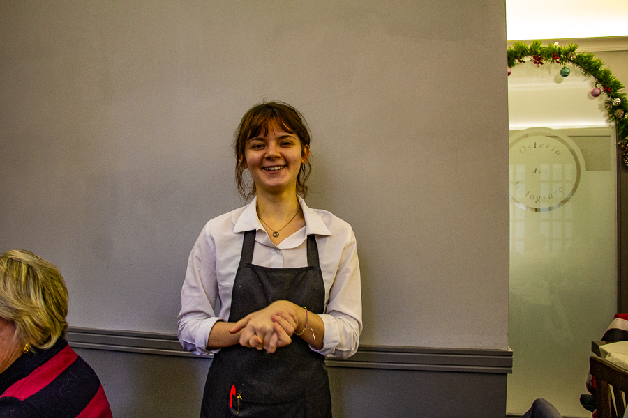 AUGURI di NATALE APVE a CREMONA 18 dicembre 2025 A pranzo all' OSTERIA DEL MELOGRANO. A tavola con gli amici a festeggiare il NATALE con allegria. La graziosa cameriera.