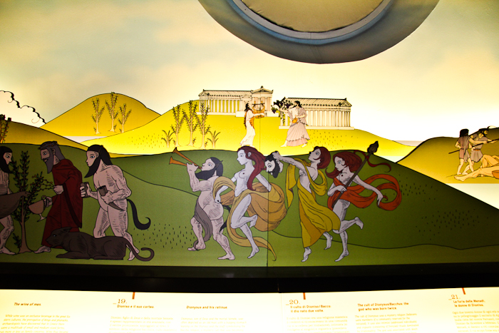 2016-11-17 - BAROLO ( CN ) - Un interno del castello. La guida illustra le vicende del castello, dei vigneti , delle stagioni e degli alti e bassi dell' economia della regione. ( I baccanali dell'epoca di Roma antica ) .