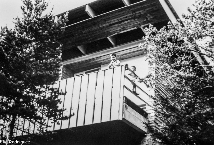 Villaggio ENI di CORTE DI CADORE - Bruno e Francesco giocano sul balcone della loro villetta. 1962-08-26