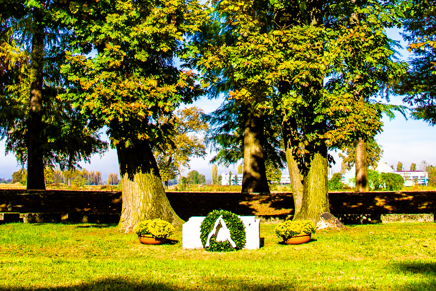 COMMEMORAZIONE Enrico MATTEI nel 63° anno della scomparsa - 27 OTTOBRE 2025 - BASCAPE' (PV) - La stele di granito con scolpiti i nomi di Enrico MATTEI (Presidente dell'ENI), Irnerio BERTUZZI (il pilota del jet) e William Mac Hale (il giornalista statunitense).