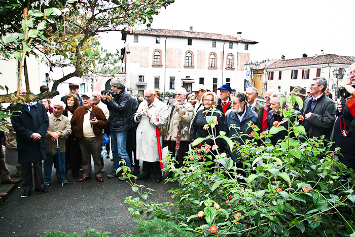 2012-10-27 - BASCAPE' ( PV ) - Commemorazione di Enrico MATTEI : la folla presso la targa di Enrico MATTEI.