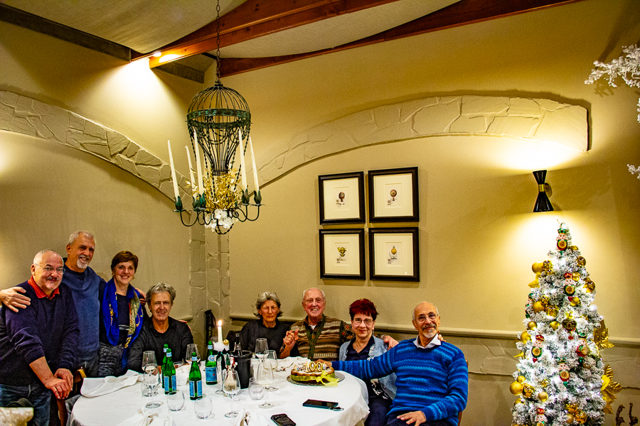 ELIO 100° compleanno alla MONGOLFIERA di MILANO 1 dicembre 2025 Foto di gruppo ; da sinistra : BIBO, FRANCESCO, IDA, BRUNO, LAURA, ELIO, LIA, BEPI.