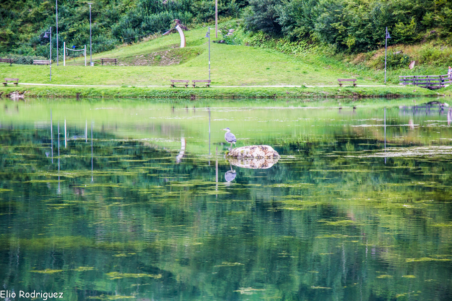 2020-08-24 - VILLANOVA DI CADORE ( BL ) : in vacanza. Il laghetto MOSIGO di SAN VITO DI CADORE. Al centro uno scoglio con un " airone cinerino ".
