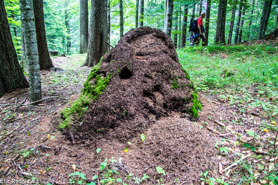2020-08-28 - VILLANOVA DI CADORE ( BL ) : in vacanza. Un grosso formicaio malridotto sulle falde del monte PELMO. Sullo sfondo FRANCESCO.