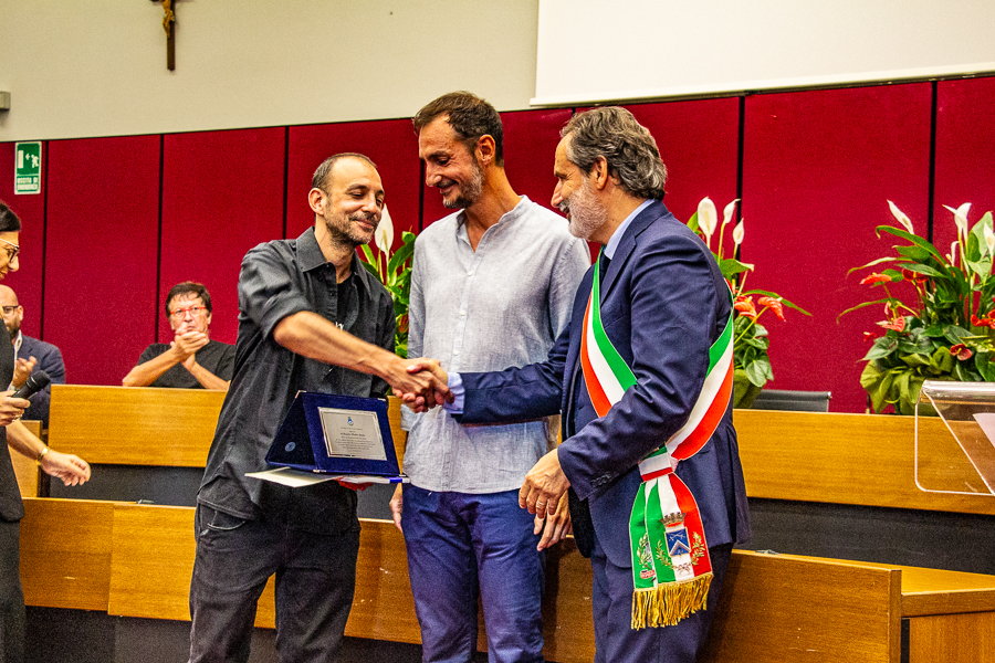 CIVICI RICONOSCIMENTI - BENEMERENZE - SAN DONATO MILANESE - Sabato 20 settembre 2025 - Sala Consiliare del Comune- Il secondo Civico Riconoscimento alla MEMORIA del Maestro Walter MADOI. Stretta di mano con l'altro premiato.
