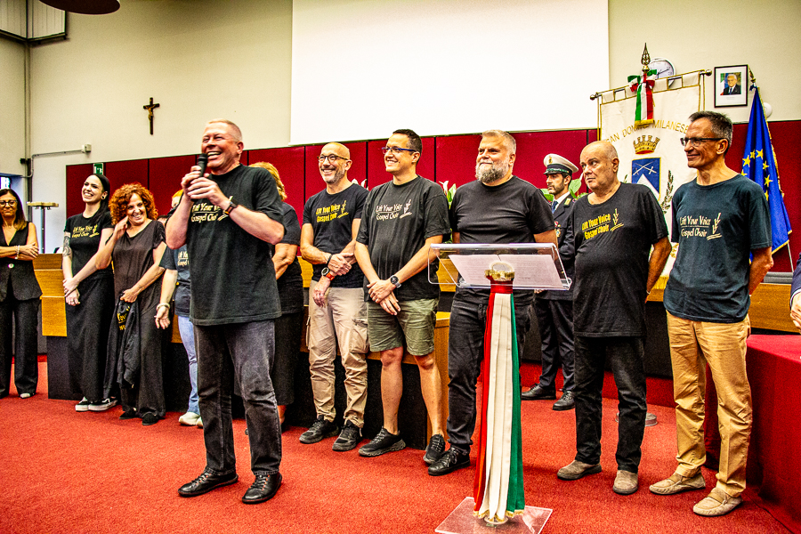 CIVICI RICONOSCIMENTI - BENEMERENZE - SAN DONATO MILANESE - Sabato 20 settembre 2025 - Sala Consiliare del Comune - Il terzo Civico Riconoscimento al LIFT YOUR VOICE GOSPEL CHOIR. Prende la parola il Direttore del Coro.