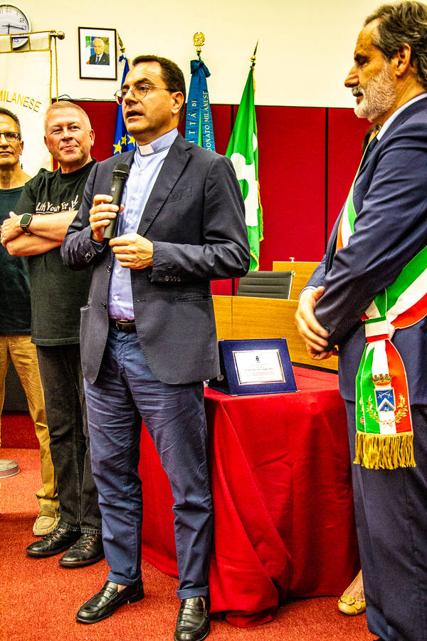 CIVICI RICONOSCIMENTI - BENEMERENZE - SAN DONATO MILANESE - Sabato 20 settembre 2025 - Sala Consiliare del Comune - Presente alla cerimonia il Parroco di SAN DONATO MILANESE Don Umberto BORDONI che prende la parola.