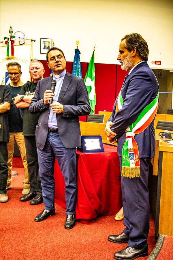 CIVICI RICONOSCIMENTI - BENEMERENZE - SAN DONATO MILANESE - Sabato 20 settembre 2025 - Sala Consiliare del Comune - Presente alla cerimonia il Parroco di SAN DONATO MILANESE Don Umberto BORDONI che prende la parola ed esprime compiacimento per l'interessante e aggregante cerimonia.
